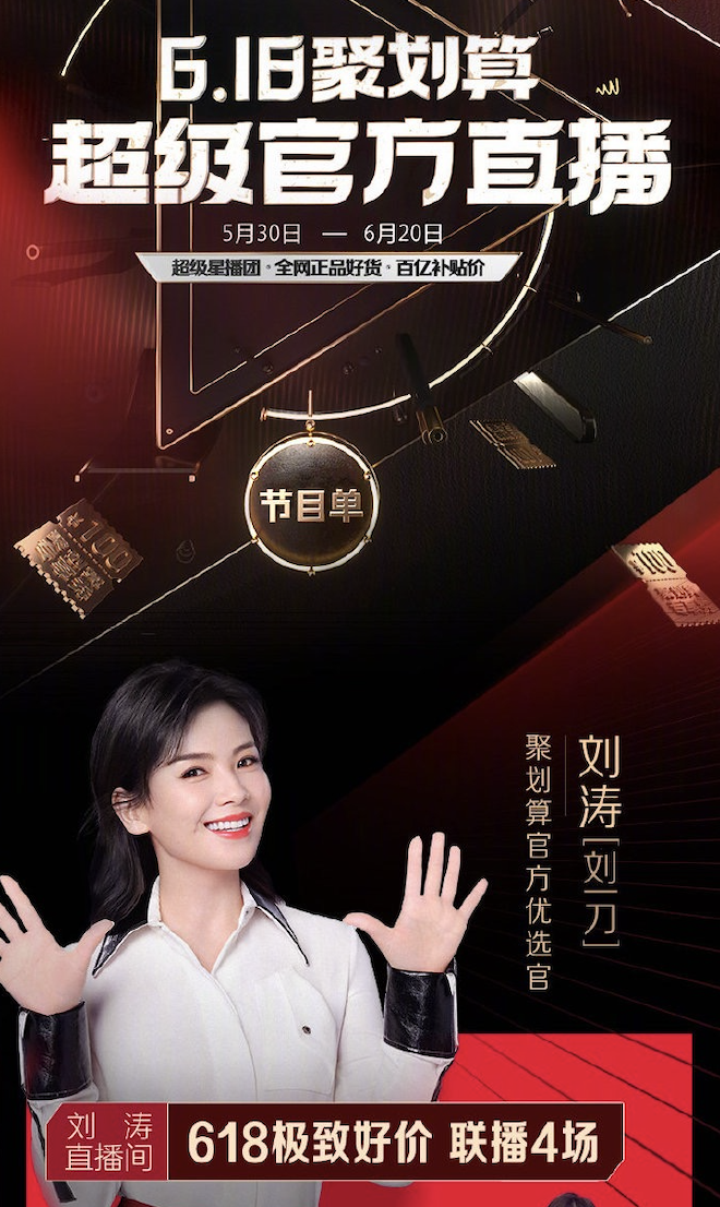明星刘涛已经在淘宝直播试水有一阵了,5月14日直播首秀战绩1.48亿,快一个月过去,她在直播生态中的角色越来越稳。如今作为聚划算官方优选官,江湖人称“刘一刀”。