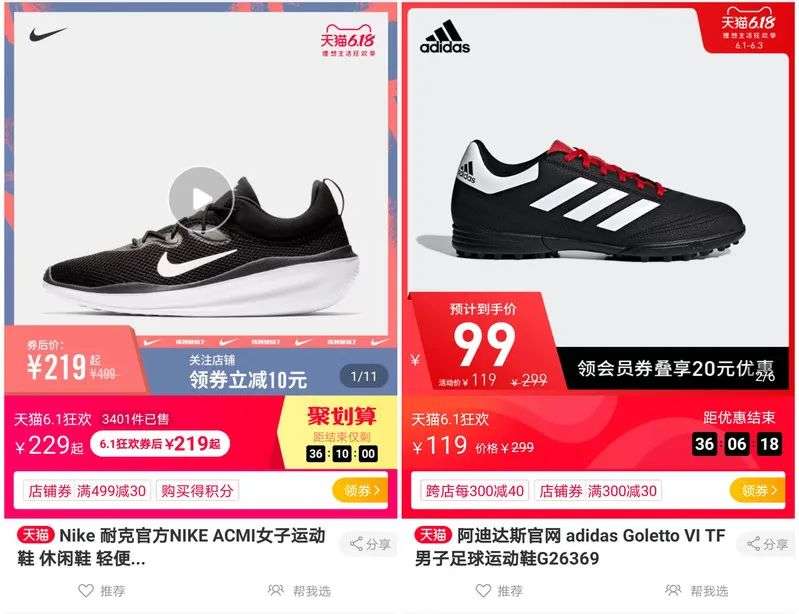 而按照这次“618”不少产品的价格,耐克阿迪打折之后,抢占的是李宁和安踏的市场;安踏李宁再往下压价,抢占的是361°等其他运动品牌的市场。