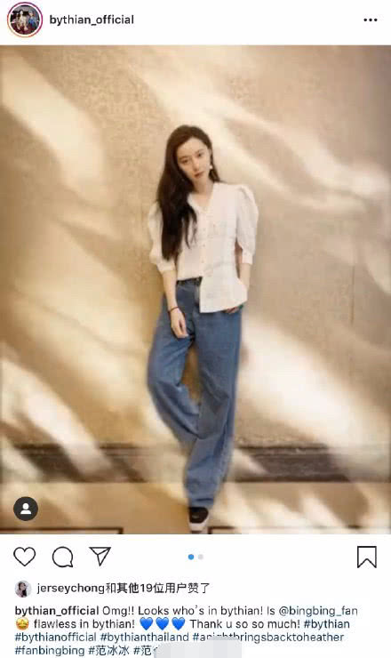 照片里冰冰略施粉黛,一身休闲打扮也美得出挑,对于范冰冰的支持,品牌表达出激动与感谢。