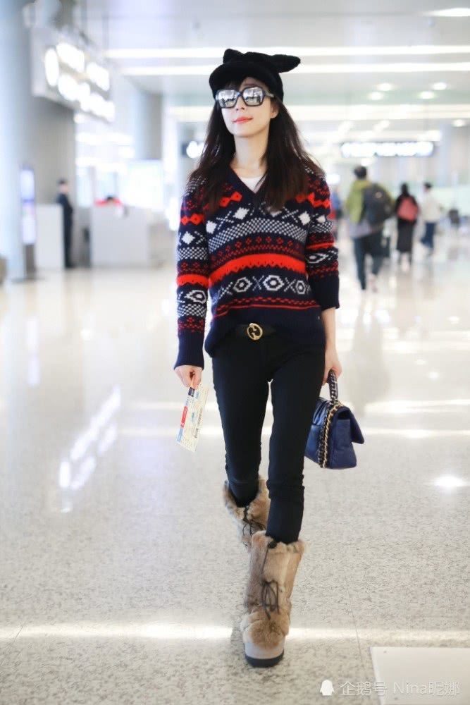 张静初温度升高还这么厚,穿16800毛衣配“东北靴”