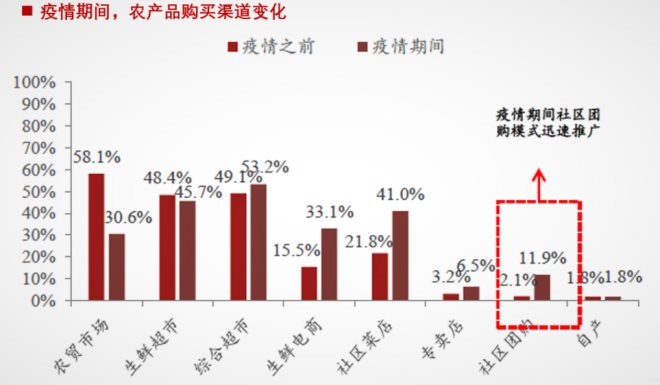 有机构预测,2020年社区团购市场规模将达720亿,到2022年市场规模将会超千亿。双11期间,淘宝农产品销售额增长76%,京东生鲜3分钟涌入百万用户等都印证了消费者在线上购买生鲜的大趋势。