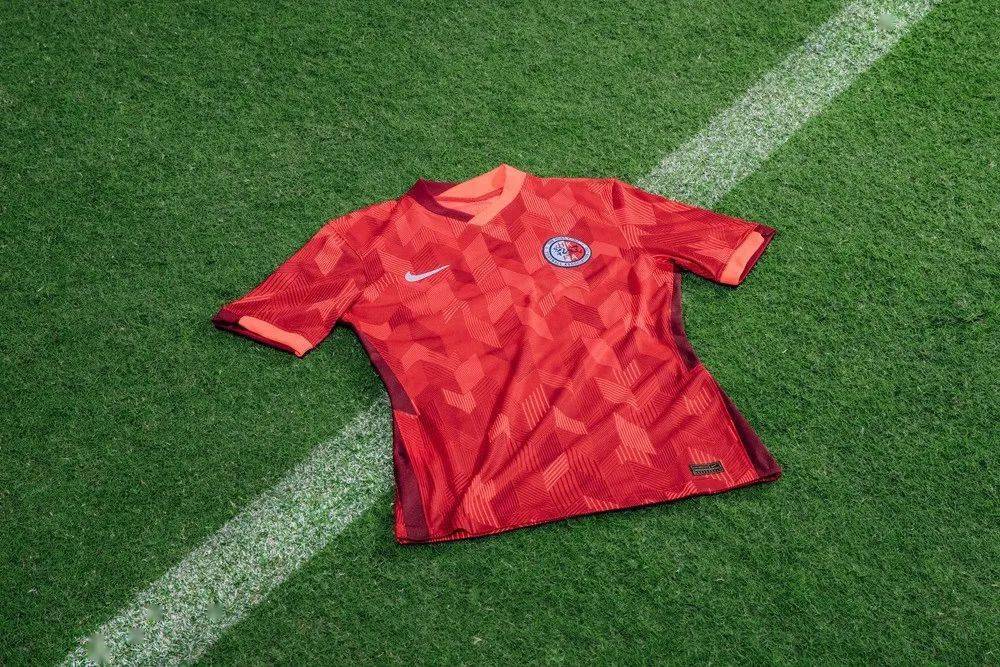 中国香港代表队全新主场球衣延续代表香港足球传统的红色外观,深浅不同的两种红色组合而成的几何图案犹如香港随处可见的高楼,营造出迷人的视觉效果。拥有独特交叉结构的V领同样由深浅不同的两种红色组成,衣领内加入响亮的助威口号“香港劲揪”。