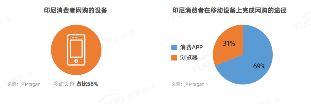 相较于PC端,大部分印尼消费者选择在移动设备完成线上交易。根据J.P. Morgan提供的相关数据显示,印尼58%的线上消费是在移动设备上完成的,且每10笔线上交易中,差不多有7笔是通过购物APP完成的。优化移动购物服务对于获取印尼消费者至关重要。预计到 2023年,移动端电子商务将以20.3%的年复合增长率持续增长,这意味着移动端将成跨境卖家未来布局重点。