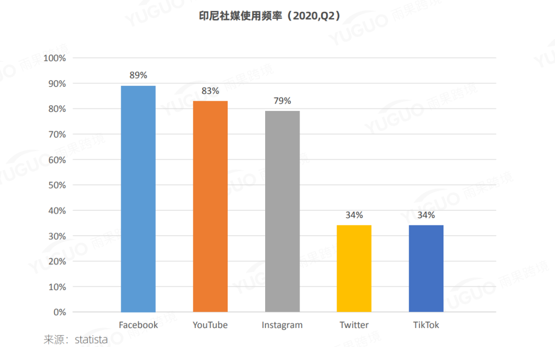 根据statista一项调研结果显示,2019年,受访印尼网民(16-64岁)每天大概得花3小时 26分钟在社交媒体上,其在17岁-44岁人群进行的一项关于社交媒体使用情况的调查表明, 有89%的受访者在过去三个月内每天都会访问Facebook。预计到2025年,印尼的Facebook用户数量将达到约2.56亿。以2020年第2季度为例,印尼过去三个月社交媒体用户每天访问的主要社交媒体平台是 Facebook(89%)、YouTube(83%)、Instagram(79%)、Twitter(34%)以及 TikTok(24%)。这些数据表明,印尼消费者是“社媒重度使用患者”,也为想要开拓印尼市场的中国卖家提供了广告投放的精准渠道。
