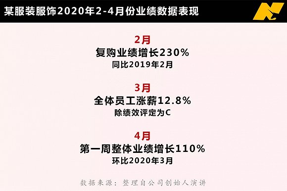 某服装公司疫情期间的业绩水平出现逆势增长数据来源:公司创始人演讲制图:新商业要参