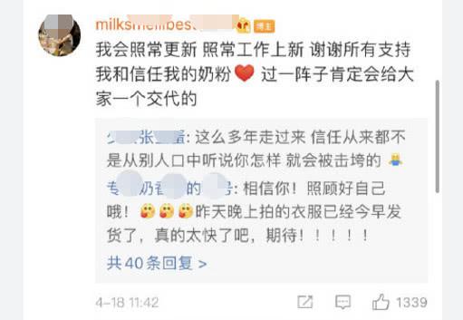 除此之外,张大奕发布的一件短衫还配上了“小衫也能出道”,其中的“小衫”疑似在谐音“小三”,因而遭到网友们的冷嘲热讽。但对于这些传闻,张大奕并没有进行回应,只是否认了网传自己怀孕的消息,直播时也一直在正常开播,同时还通过小号回应称接下来会正常上新,过一阵子肯定会给大家一个交代。