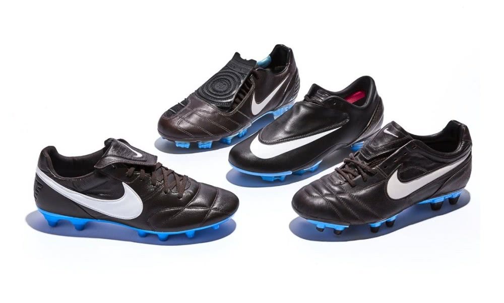 耐克的大赛足球鞋套装起源于2008年欧洲杯,为旗下Mercurial、Tiempo和T90 Laser II足球鞋打造了经典的“E8”套装。三款战靴采用质感十足的棕色皮革与天蓝色大底相结合的设计,创造出古典、优雅的外观。时至今日,E8套装依旧很受欢迎,很多EZer都怪当年太年轻,还不会欣赏这样的设计。