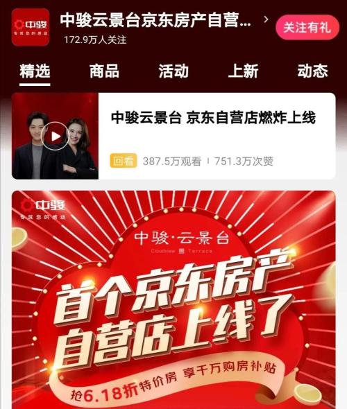 而中骏云景台京东房产自营旗舰店开店首日粉丝就超过170万。
