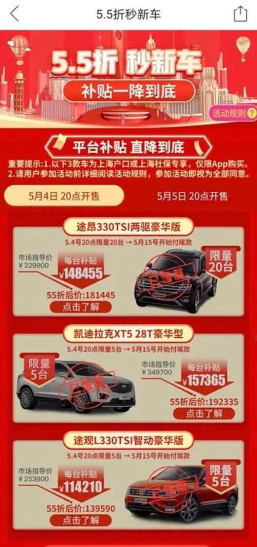 5月初,上海“五五购物节”期间,拼多多通过大额直降的方式推出一批“五五折”汽车。