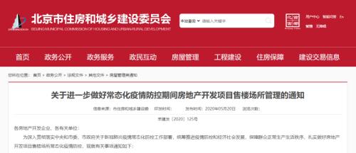 5月20日,北京市住房和城乡建设委发布《关于进一步做好常态化疫情防控期间房地产开发项目售楼场所管理的通知》,对近期房地产开发项目售楼场所疫情防控工作作出指示。