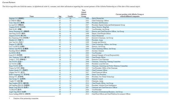 根据今年4月27日阿里对外宣布取消原淘宝天猫总裁蒋凡的合伙人身份,职级从M7(集团高级副总裁)降级到M6(集团副总裁),给予记过处分并取消上一财政年度所有奖励。另一位从合伙人名单上消失的是阿里集团总法律顾问Timothy A.STEINERT,所以目前阿里巴巴共有36位合伙人。