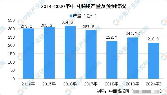 (2014—2020年中国服装产量及预测情况)