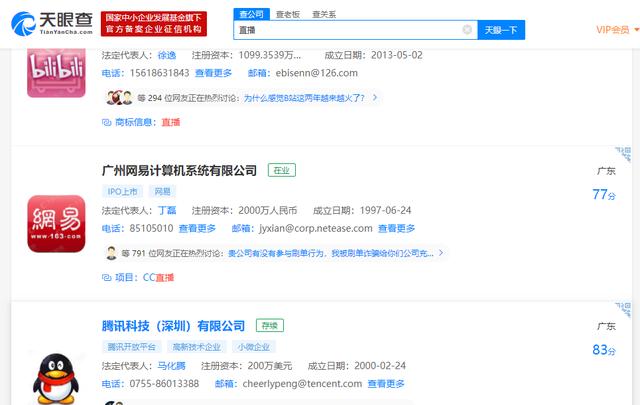 这不只是一个全民直播的时代,也是“各行各业+直播”的时代。在第三方数据平台天眼查中,以直播为筛选条件进行检索,能查到22486家公司明确带有直播业务,其中不乏腾讯、阿里、网易、bilibil等企业的身影。