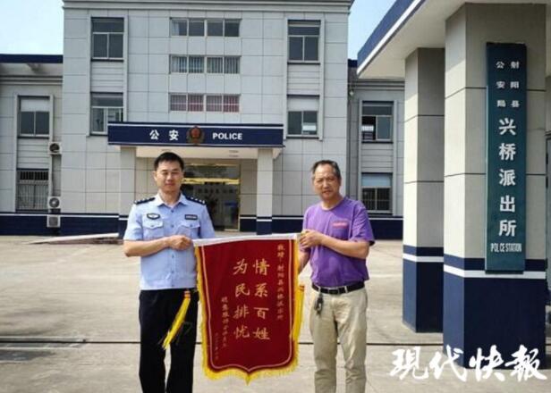 △工人给民警送锦旗通讯员供图