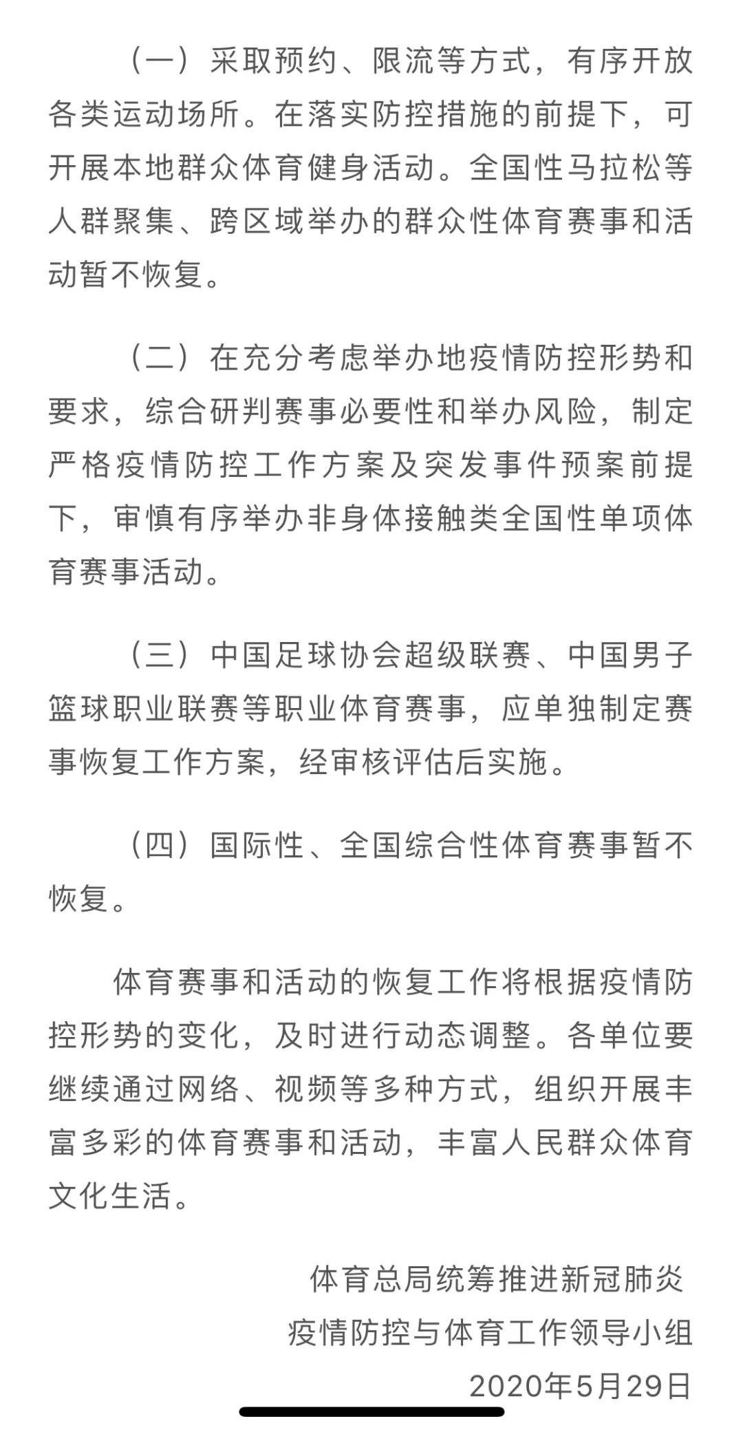 图说:国家体育总局5月29日公告。