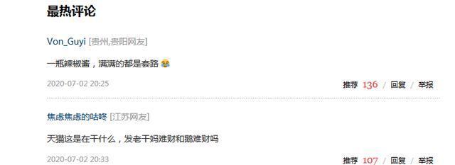 腾讯方面可以说是欲哭无泪了,此前,被骗一事刚公布时,各大互联网公司官方纷纷到腾讯官方下留言进行嘲讽,而这一次就是发个公告,又被天猫的老干妈旗舰店实力嘲讽一波。而这次天猫也卷了进来,有网友表示:天猫这是在干什么,发老干妈难财和鹅难财吗?还有网友也表示:你干妈还是你干妈!