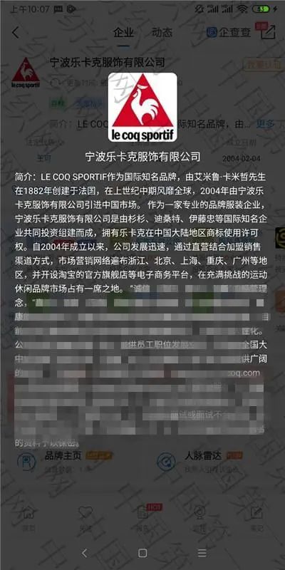 宁波乐卡克服饰有限公是以经营lecoqsportif(乐卡克)品牌运动休闲服装为主的大型中日合资企业,注册资本为200万美元,拥有lecoqsportif(乐卡克)品牌在中国大陆地区的独家代理权和商标使用许可权,乐卡克品牌作为国际知名品牌,由艾米鲁·卡米哲先生在1882年创建于法国。