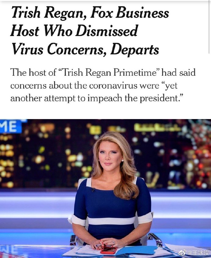 翠西节目停播了。福克斯新闻说是由于对疫情的报道需求,所以要从翠西的黄金时间和另外一个被停播的节目(9点节目:肯尼迪)调配资源。不过美国媒体说,真正的原因是翠西最近在一次节目中,因为对新冠病毒不屑一顾,说是民主党对弹劾特朗普的又一次尝试,而惹来争议。 翠西在一份声明中说:我在福克斯度过了愉快的时光,现在我打算在这个困难时期专注于我的家庭。感谢福克斯给我的机会,期待我职业生涯的下一个篇章。
