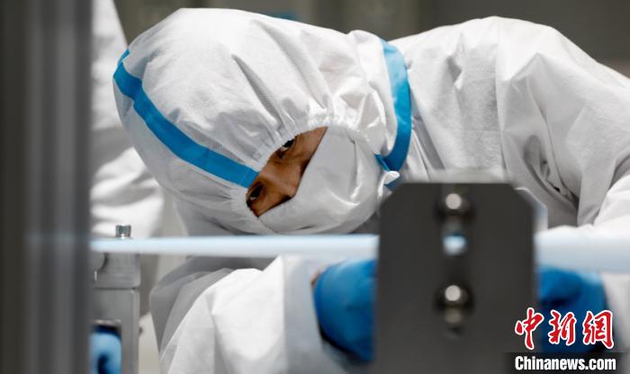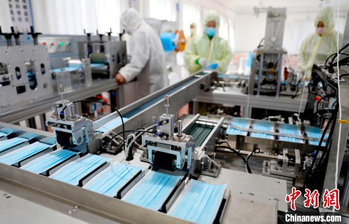 图为大庆油田员工正在调试口罩生产设备。 许书晨 摄